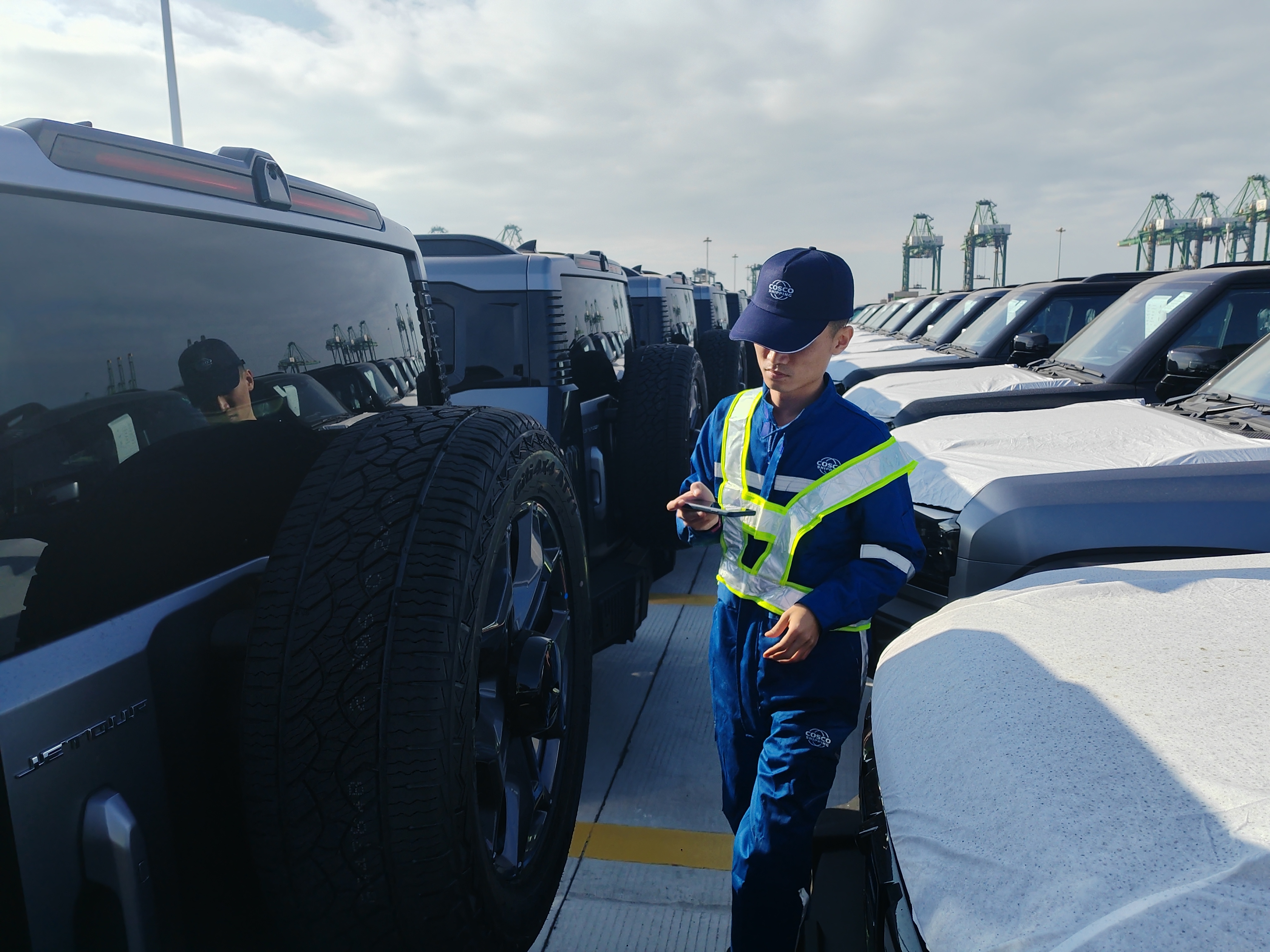 为确保装船效率与质量安全双双达标,在完成日间集中点检工作后,理货团队连夜联动船方及厂商技术指导组,针对部分电量异常的车辆迅速启动放电与补电处理流程,做到问题即时发现、即时处置,有效避免因技术状态不达标引发的装运延误。