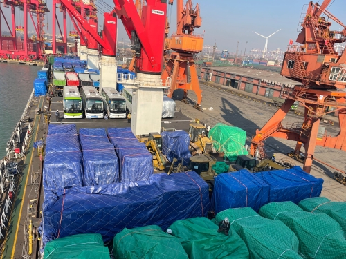 “环航17”轮此次满载21票设备车辆类货物,总计160件,囊括挖掘机、自卸车、牵引车、客车及高空作业平台等多种工程与客运设备,这些均是“一带一路”沿线国家基础设施建设与民生改善的关键物资。此外,该轮还搭载了彩涂卷、镀锌卷、钢管、型钢等各类钢铁制品,货物总毛重超过2.3万吨,体积超1万立方米,对理货工作的精准度与协同效率提出了极高要求。